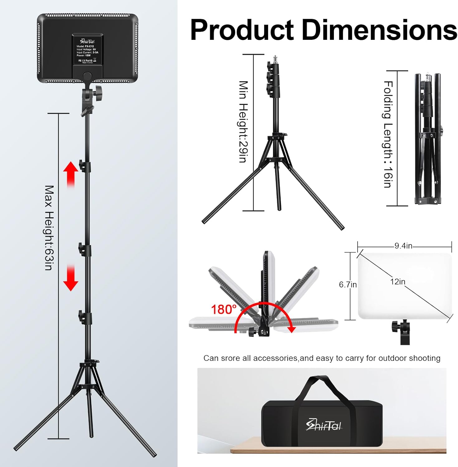 12″ LED Video Light Kit,2-Pack Photography Lighting Kit,73″ Height 2800-6500K Dimmable Studio Lights with Tripod Stand and Phone Holder, Streaming Lighting for Video Recording,Podcast,YouTube